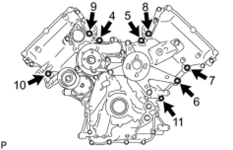 Tighten the 8 bolts labeled 4 to 11 in several steps in the sequence shown in the illustration.