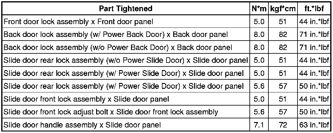 SPECIFICATIONS: DOOR LOCK: TORQUE SPECIFICATIONS