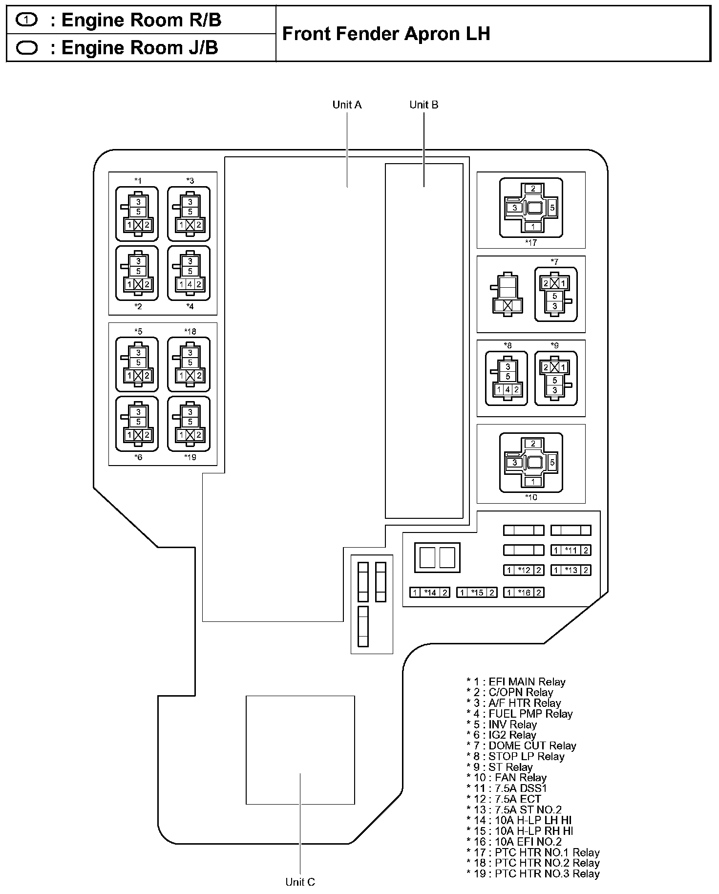 Engine Room R/B, Engine Room J/B - Front Fender Apron LH: