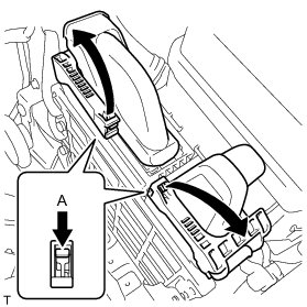 (a) While slightly pushing portion A of the lever of the ECM connector, turn the lever until it makes a click sound.