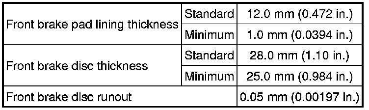 SPECIFICATIONS: BRAKE (FRONT): SERVICE DATA