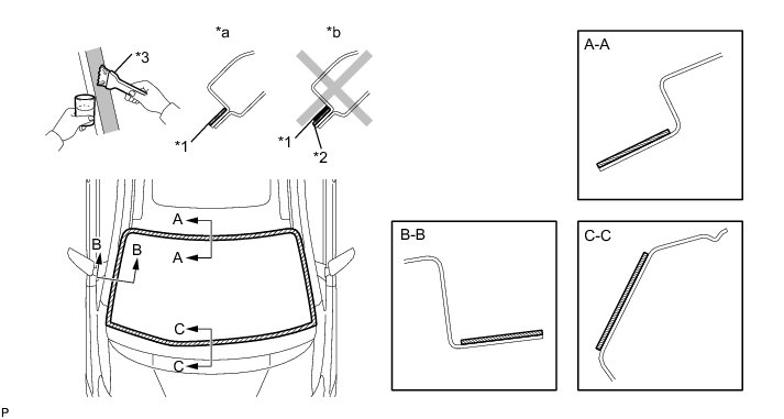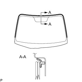 (b) Install a new adhesive dam onto the windshield glass, as shown in the illustration.