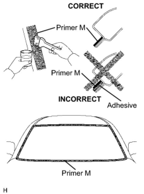 (c) Using a brush or sponge, apply Primer G to the edge of the windshield glass and contact surface.