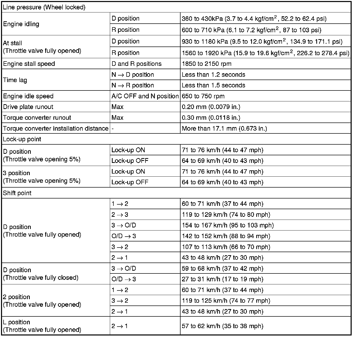 SERVICE SPECIFICATIONS: A340E AUTOMATIC TRANSMISSION: SERVICE DATA