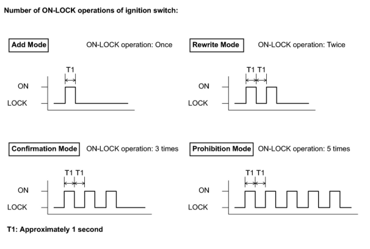 (b) Insert the key into the ignition key cylinder, and remove it twice within 5 seconds.
