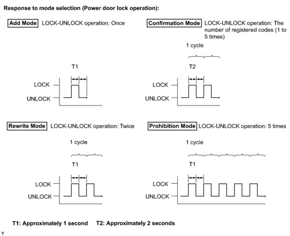 If the number of ignition switch ON-LOCK operations is 0, 4, 6 or more, there will be no response (power DOOR LOCK and UNLOCK operation) to show which mode has been selected.