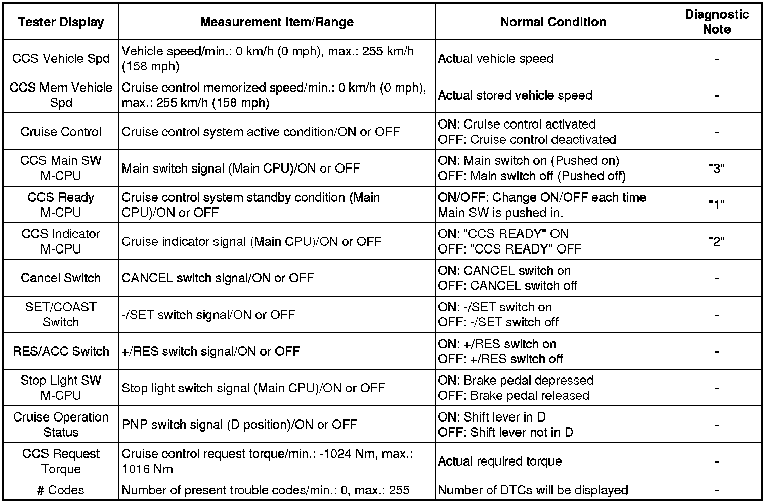 Powertrain / Cruise Control / Data List.