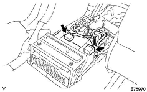 (b) Disconnect the 2 connectors and remove the 2 wire harness clamps.
