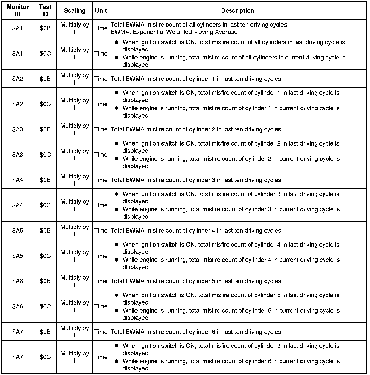 *: EWMA (Exponential Weighted Moving Average) misfire counts for last 10 driving cycles (calculated) Calculation: 0.1 x (current counts) + 0.9 x (previous average) Initial value for (previous average) - 0