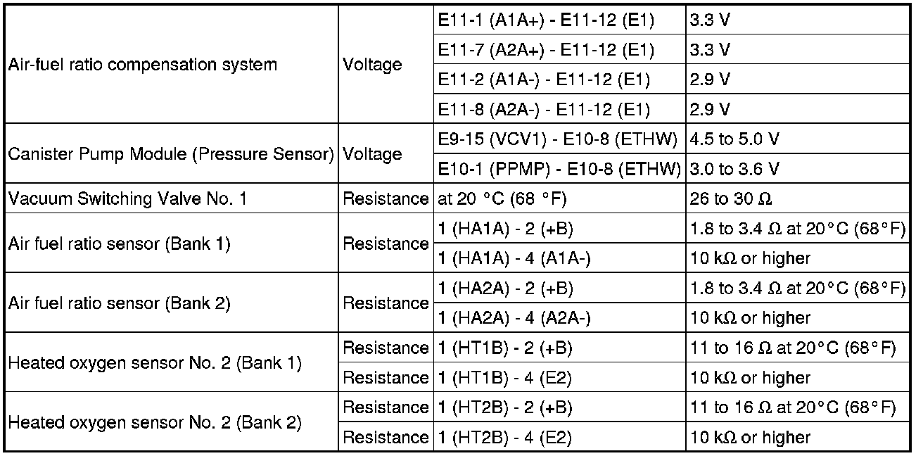 SERVICE SPECIFICATIONS: 1GR-FE EMISSION CONTROL: SERVICE DATA