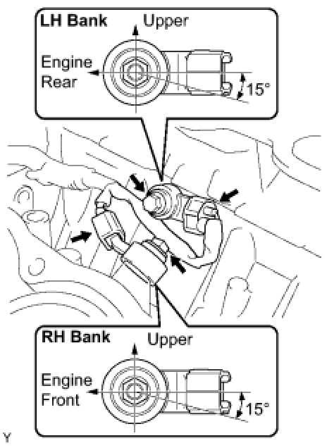 (a) Install the 2 knock sensors with the 2 bolts as shown in the illustration.