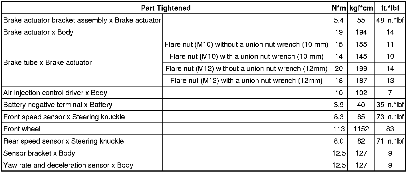 SERVICE SPECIFICATIONS: BRAKE CONTROL: TORQUE SPECIFICATIONS