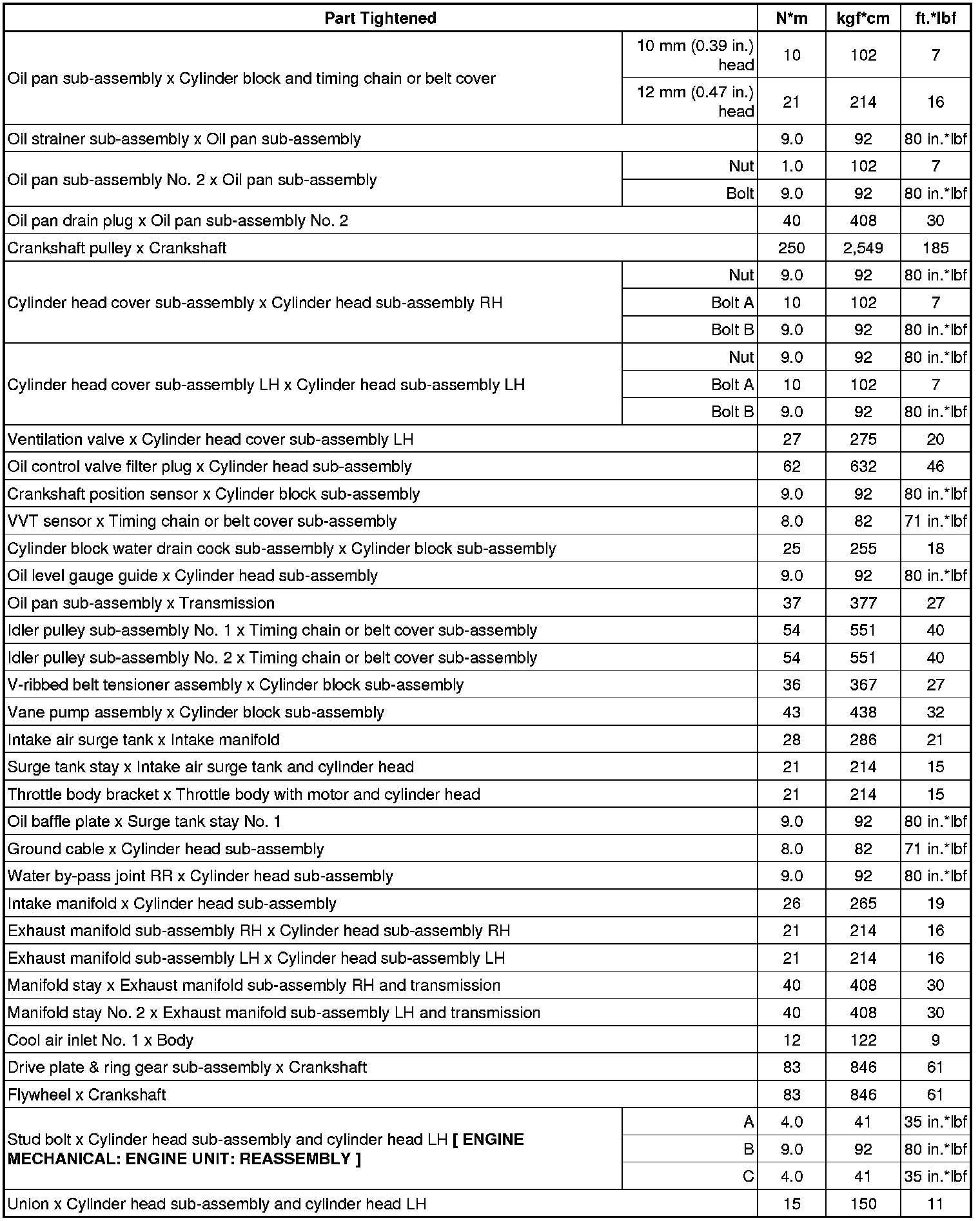 SERVICE SPECIFICATIONS: 1GR-FE ENGINE MECHANICAL: TORQUE SPECIFICATIONS