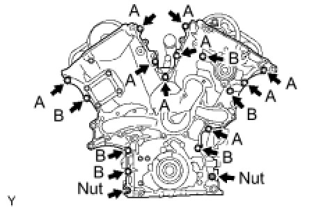 Install the timing chain cover with the 15 bolts and 2 nuts. Tighten the bolts and nuts uniformly in several steps.