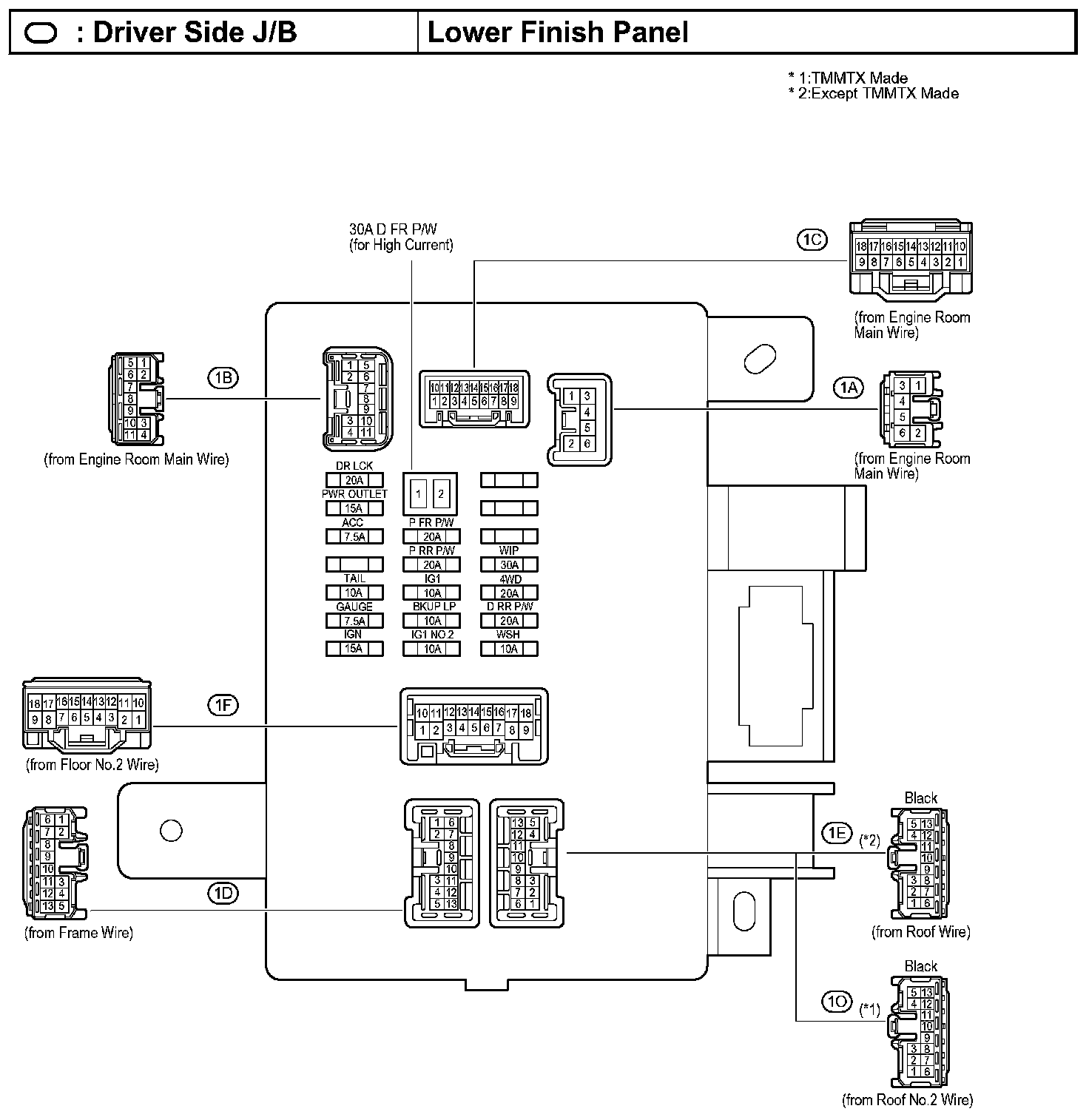 Instrument Panel J/B No.1 - Left Kick Panel: