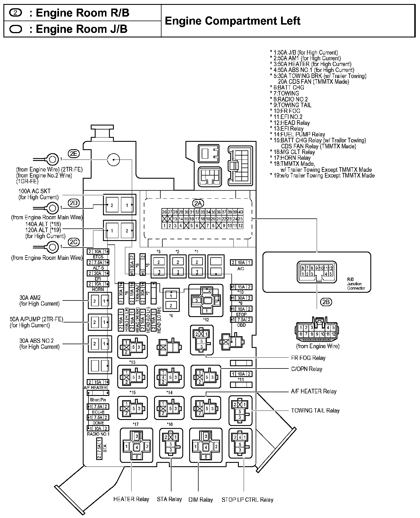 Engine Room R/B, Engine Room J/B - Engine Compartment Left:
