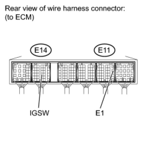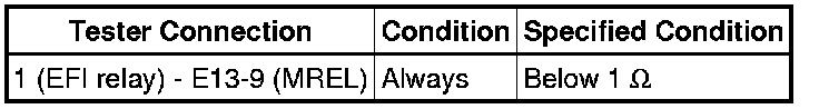 When the ignition switch is turned to ON, the battery voltage is applied to terminal IGSW of the ECM. The ECM MREL output signal causes a current to flow to the coil, closing the contacts of the EFI relay and supplying power to terminal +B of the ECM.