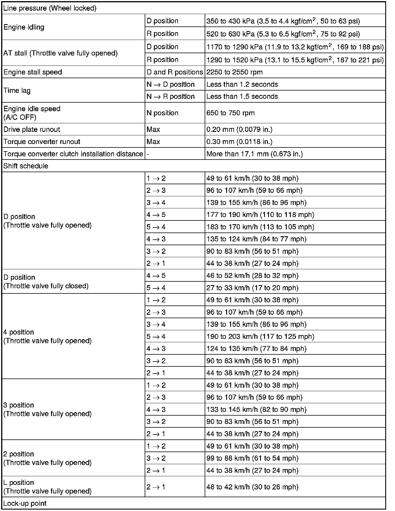 SERVICE SPECIFICATIONS: A750F AUTOMATIC TRANSMISSION: SERVICE DATA