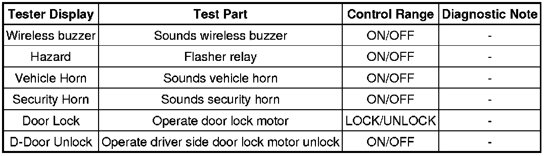DOOR LOCK: WIRELESS DOOR LOCK CONTROL SYSTEM: DATA LIST / ACTIVE TEST