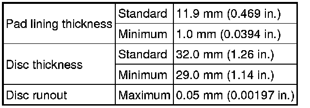SERVICE SPECIFICATIONS: BRAKE: SERVICE DATA