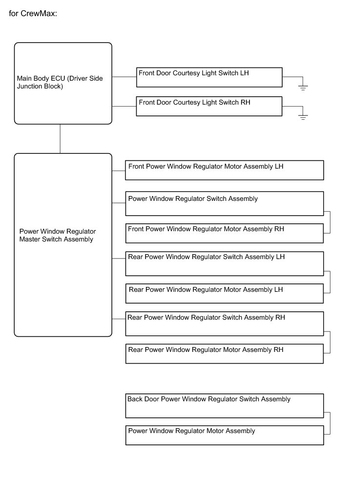 WINDSHIELD / WINDOW GLASS: POWER WINDOW CONTROL SYSTEM (w/o Jam Protection Function): SYSTEM DIAGRAM