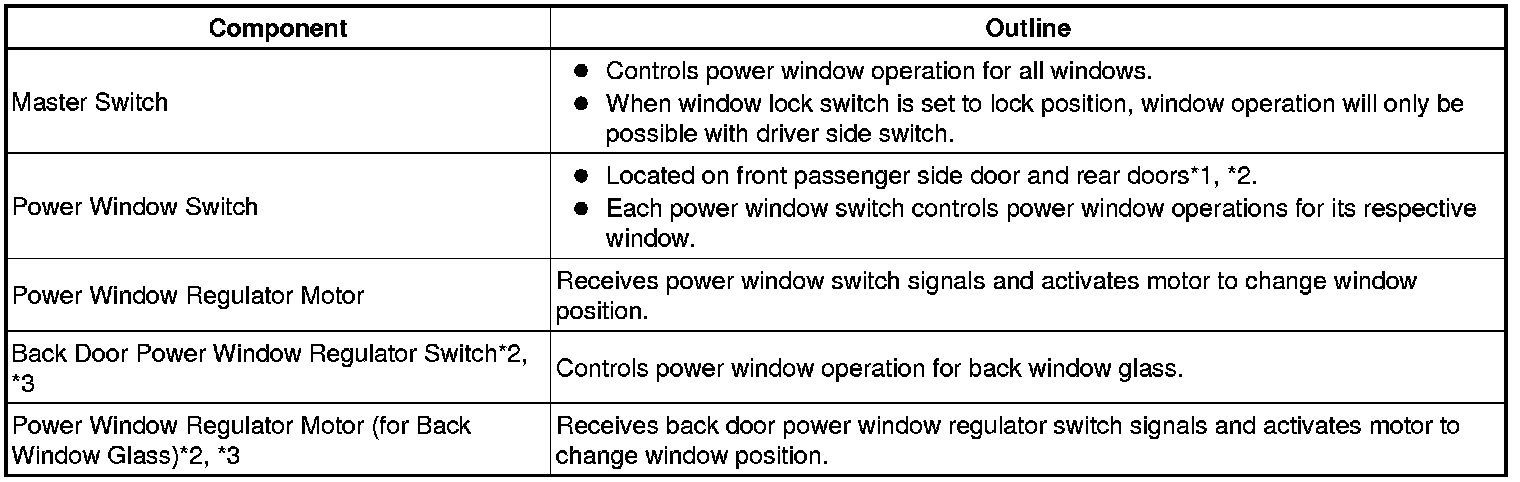 The main control of this system is the back door power window regulator switch assembly*1, *2.