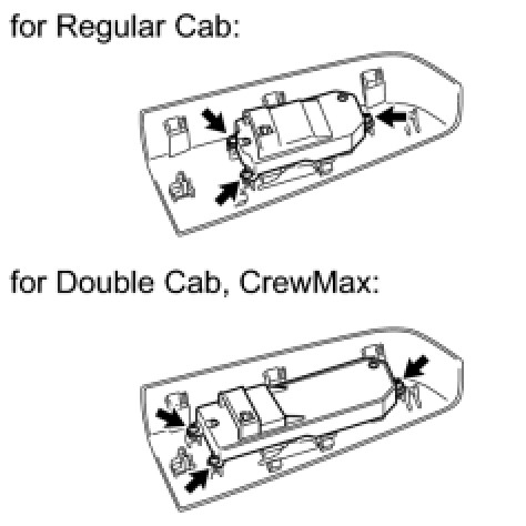 (b) Attach the 2 clips and 5 claws to install the front upper armrest base panel.