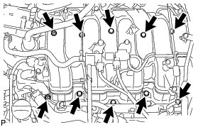 Install and uniformly tighten the 8 bolts and 2 nuts in several steps.