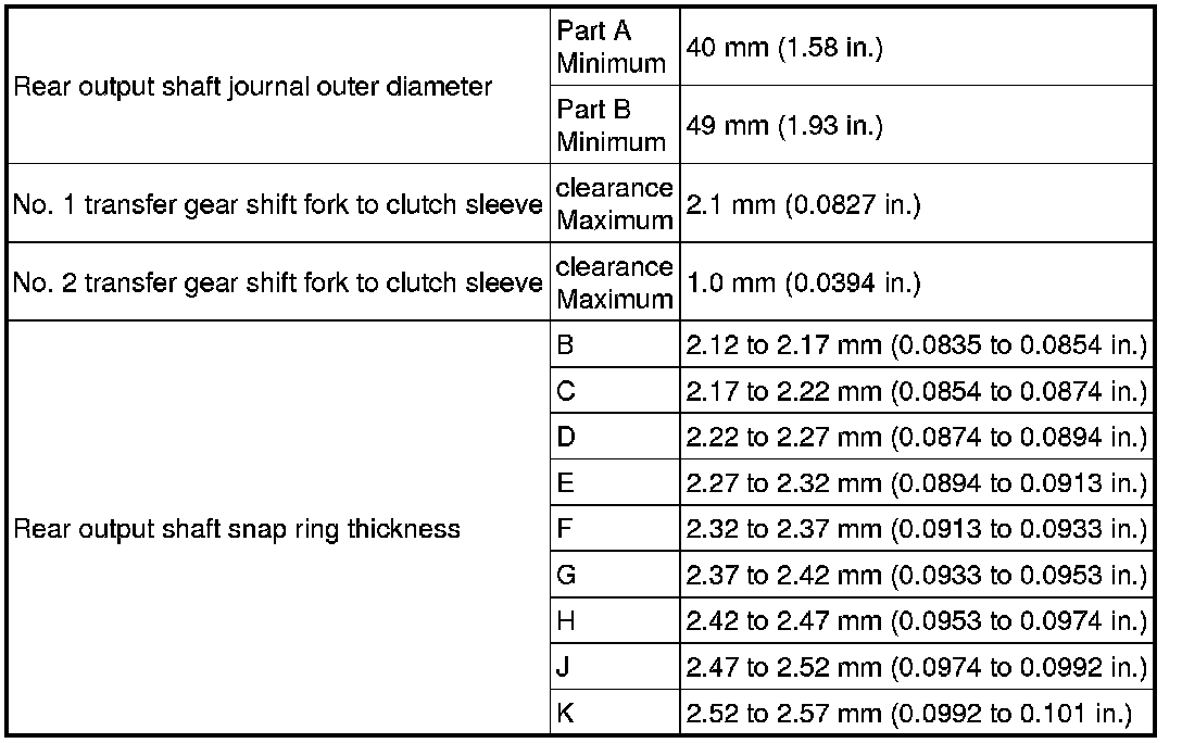 SERVICE SPECIFICATIONS: JF1A TRANSFER: SERVICE DATA