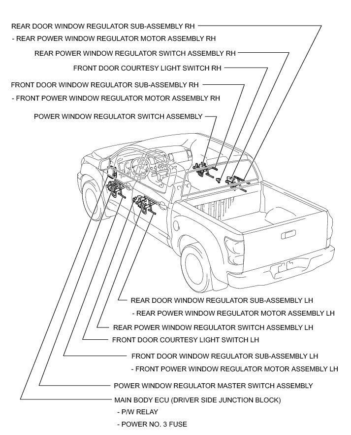 WINDSHIELD / WINDOW GLASS: POWER WINDOW CONTROL SYSTEM (w/ Jam Protection Function): PARTS LOCATION