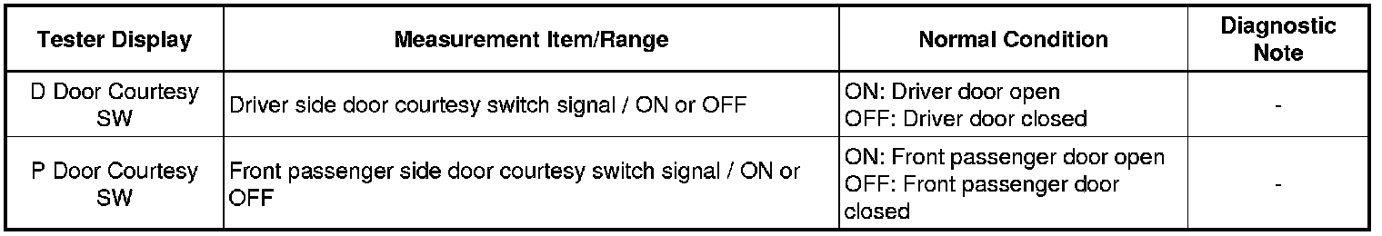 WINDSHIELD / WINDOW GLASS: POWER WINDOW CONTROL SYSTEM (w/o Jam Protection Function): DATA LIST / ACTIVE TEST