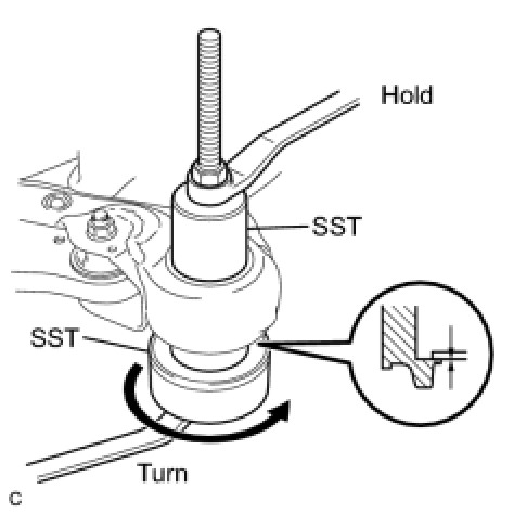 (b) Using SST, install the front suspension member body mounting front cushion as shown in the illustration.