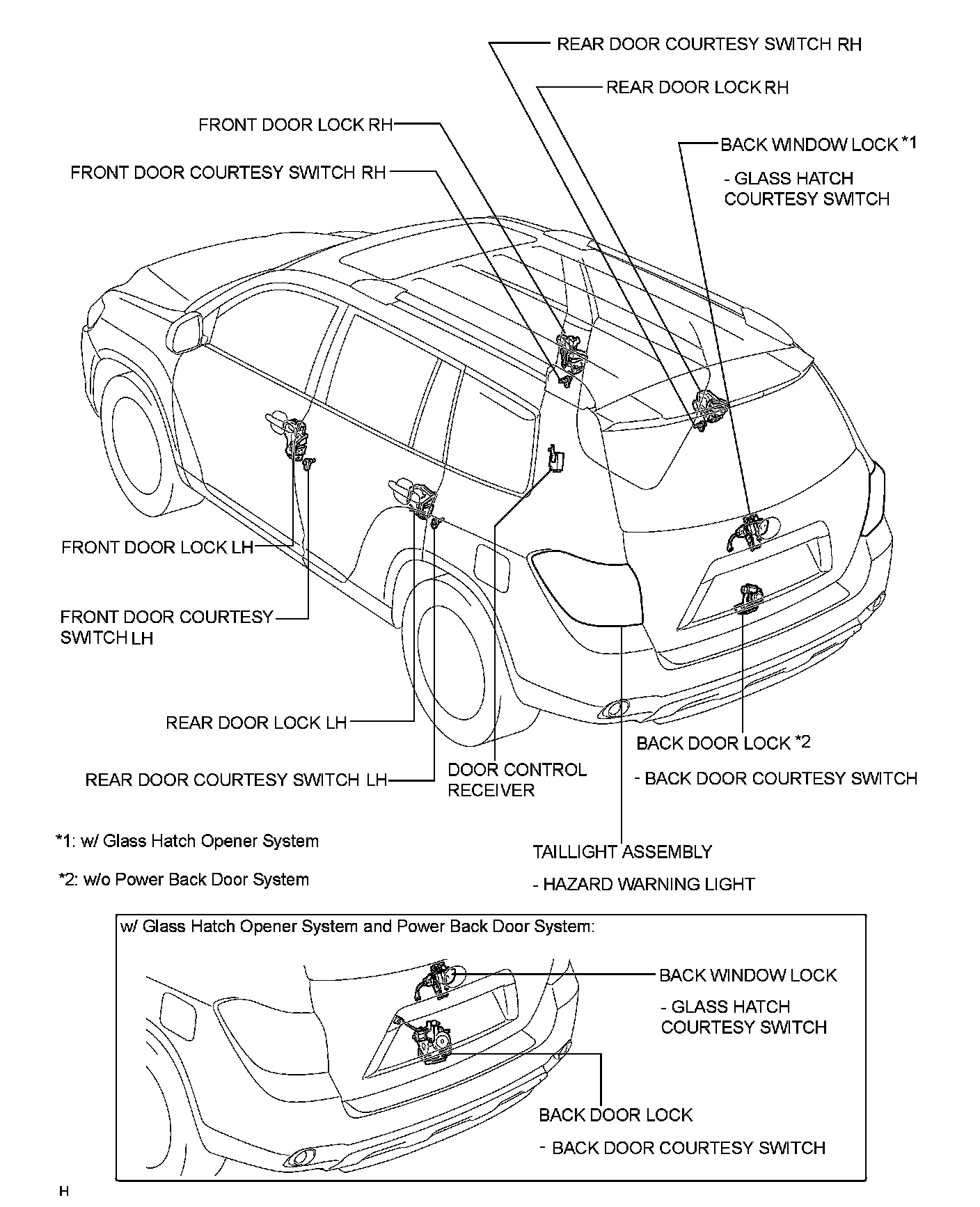DOOR LOCK: WIRELESS DOOR LOCK CONTROL SYSTEM (w/o Smart Key System): PARTS LOCATION