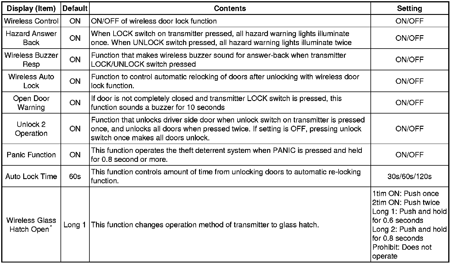 DOOR LOCK: WIRELESS DOOR LOCK CONTROL SYSTEM (w/o Smart Key System): CUSTOMIZE PARAMETERS