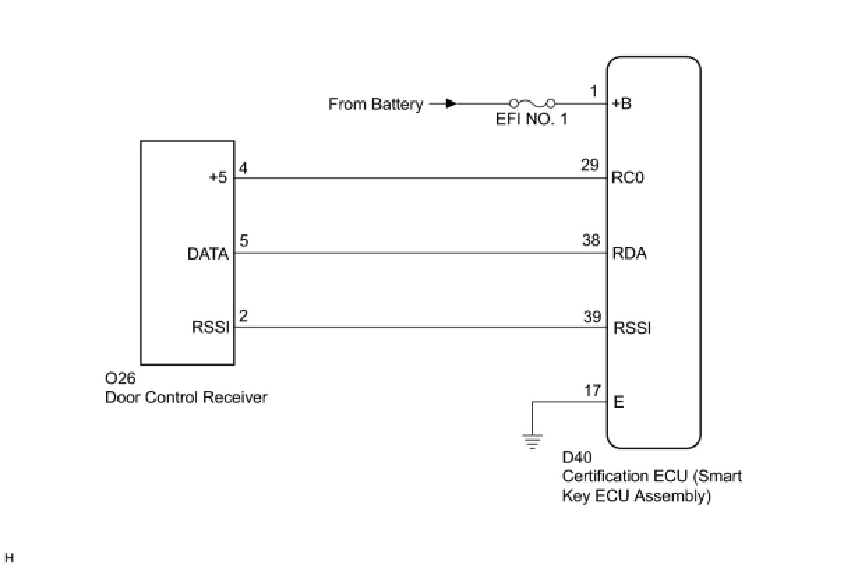 When the entry functions and wireless door lock functions do not operate, a malfunction or wave interference may be occurring in either of the following: 1) signal communication line between the door control receiver and certification ECU (smart key ECU assembly) (line is used for entry and wireless functions); or 2) electrical key transmitter.