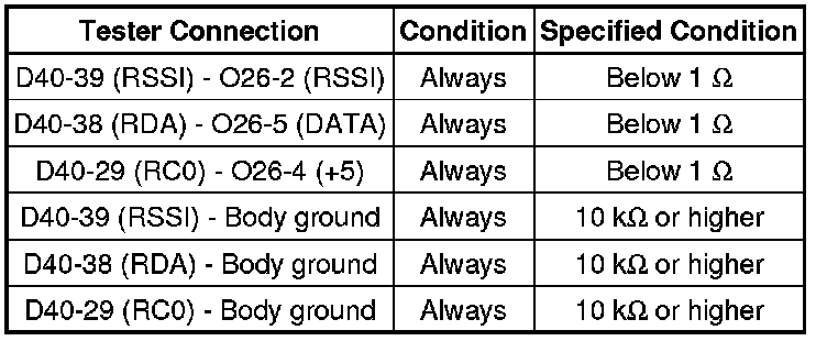 (a) Remove the battery from the electrical key transmitter that does not operate. Attach a lead wire (0.6 mm (0.0236 in.) in diameter or less including wire sheath) with tape or equivalent to the negative terminal Removal.