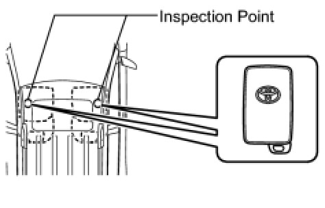 (d) Bring the electrical key transmitter near the outside electrical key oscillator (back door), and perform an entry back door open and lock functions check.