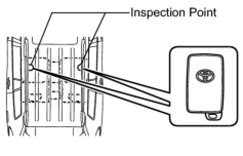 (5) When the electrical key transmitter is held at the same height as the rear bumper upper surface and aligned with the center of the rear of the vehicle, check that the wireless door lock buzzer sounds.