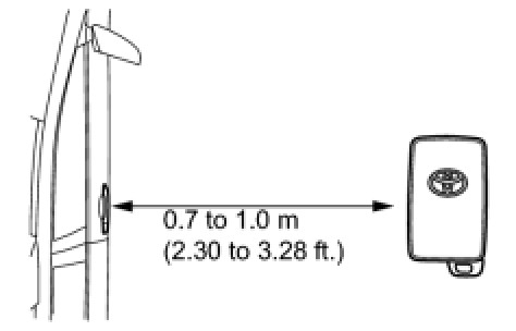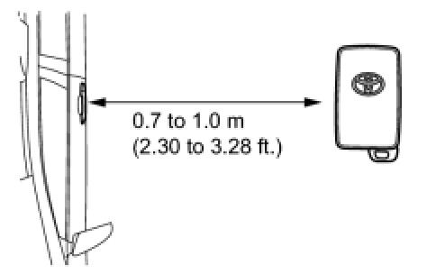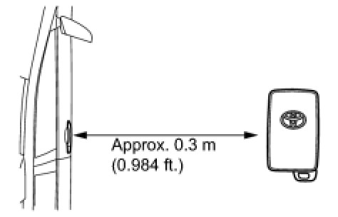 If the key is brought within 0.2 m (0.656 ft.) of the door outside handle, communication is not possible.