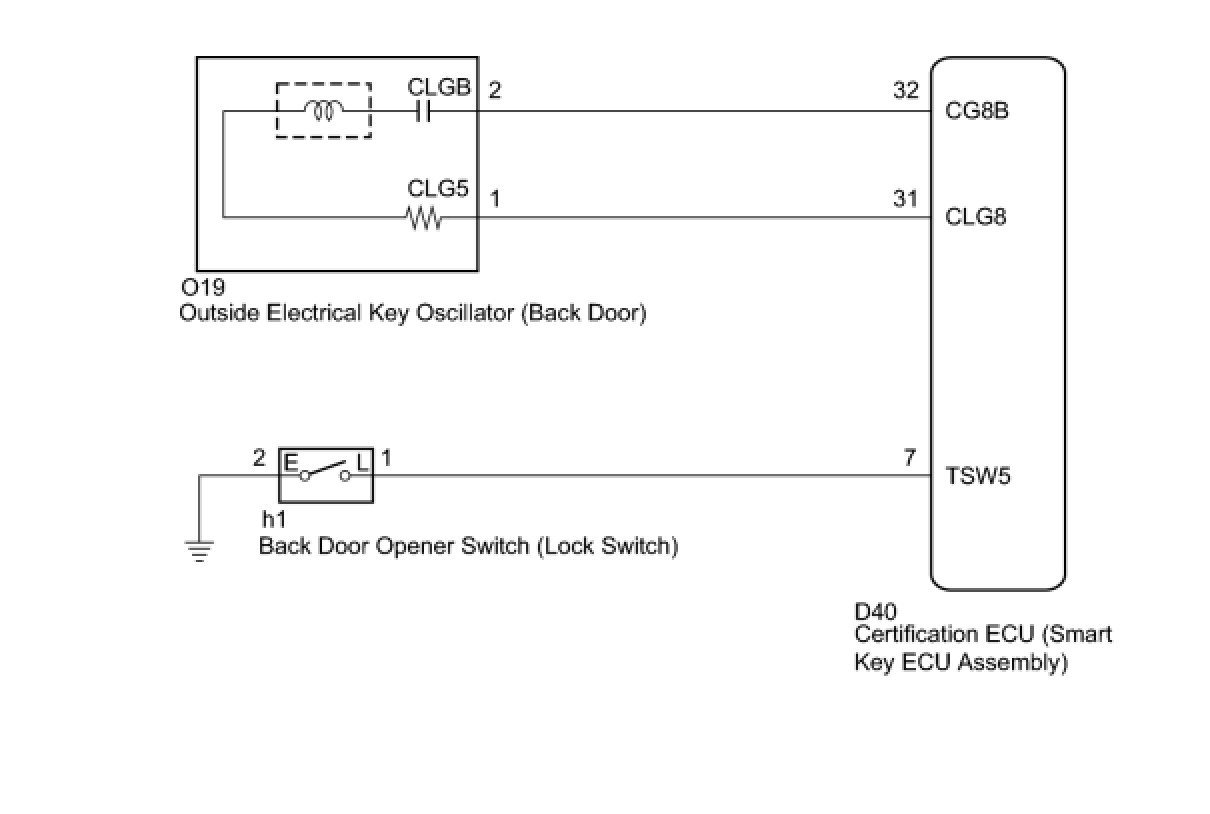 If the back door entry lock function does not operate but the back door open function operates, the communication line between the vehicle and electrical key transmitter is normal. As a faulty part, the entry lock switch circuit (certification ECU (smart key ECU assembly) -> back door opener switch (entry lock switch)) can be considered.