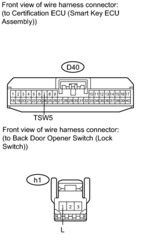 4. CHECK HARNESS AND CONNECTOR (CERTIFICATION ECU - BACK DOOR OPENER SWITCH)
