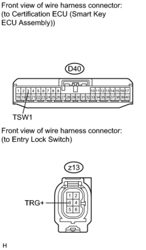 5. CHECK HARNESS AND CONNECTOR (CERTIFICATION ECU - FRONT DOOR OUTSIDE HANDLE)
