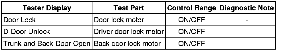 DOOR LOCK: POWER DOOR LOCK CONTROL SYSTEM: DATA LIST / ACTIVE TEST