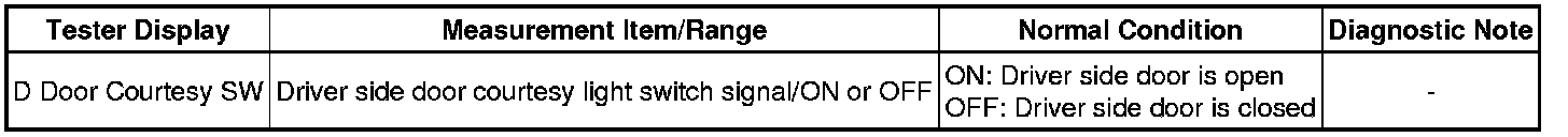 (e) Select D Door Courtesy SW in the Data List and read the tester display.