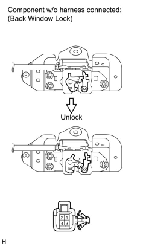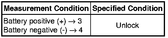 (2) Apply the battery voltage to the window lock motor and check the operation of the window lock motor.