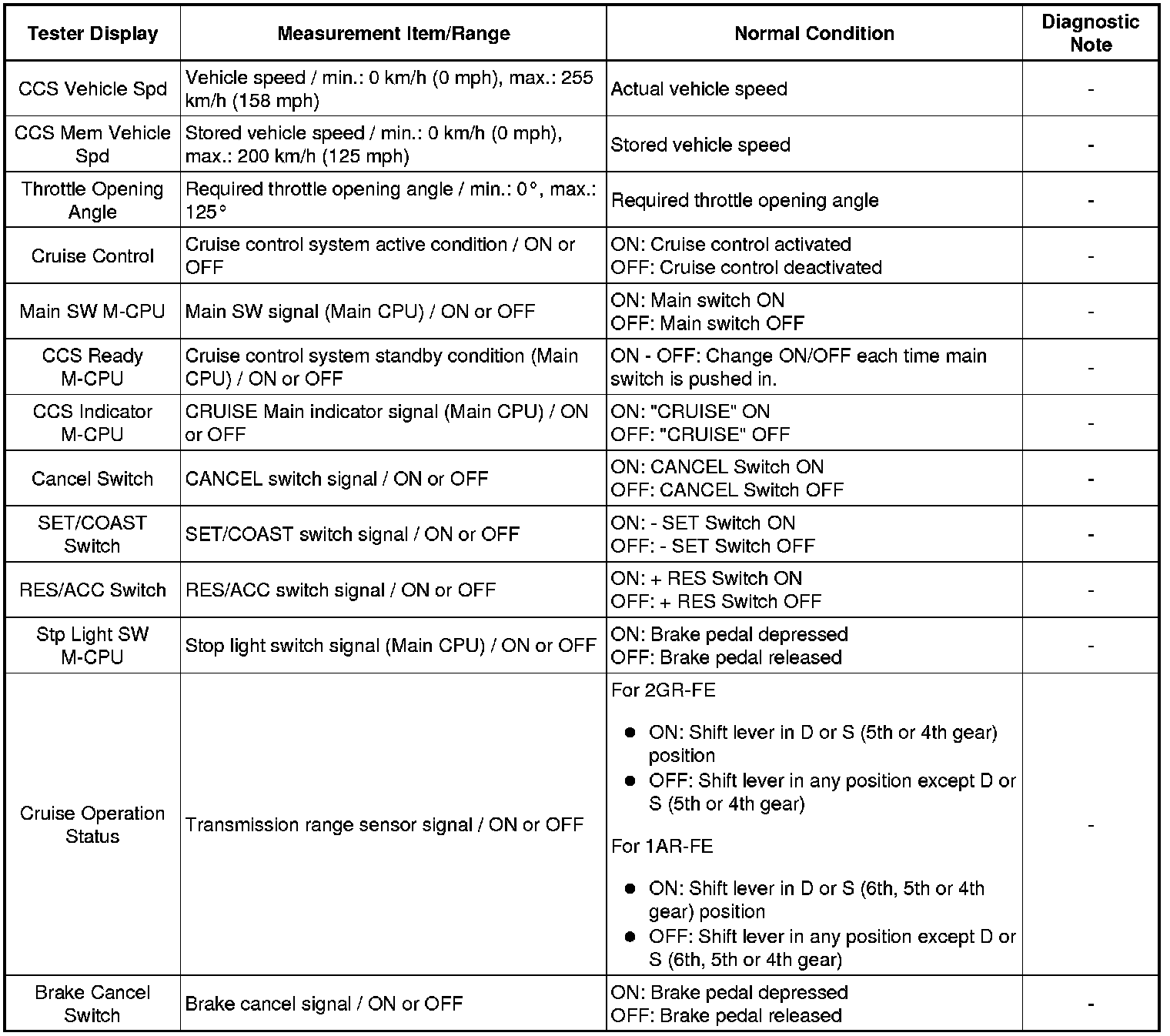 CRUISE CONTROL: CRUISE CONTROL SYSTEM: DATA LIST / ACTIVE TEST