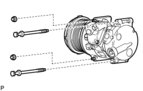 (c) Using a "TORX" socket wrench (E8), remove the 2 stud bolts and the compressor assembly with pulley.