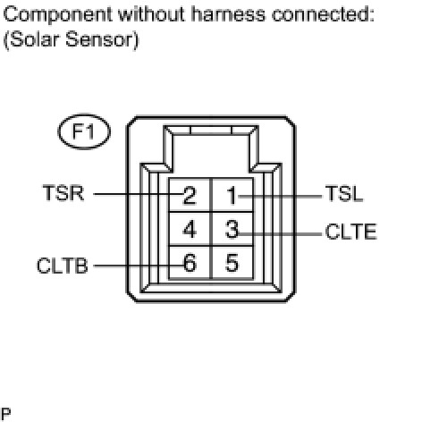 (b) Apply battery voltage between terminals 6 (CLTB) and 3 (CLTE) of the A/C solar sensor.