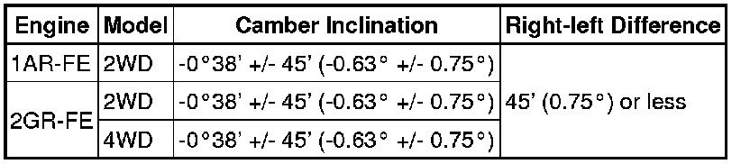 Camber (Unloaded Vehicle):
