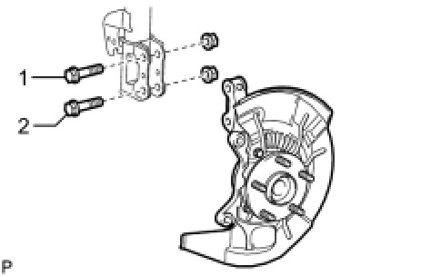 (b) Remove the 2 nuts on the lower side of the front shock absorber.